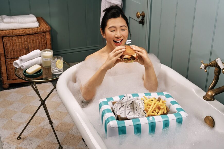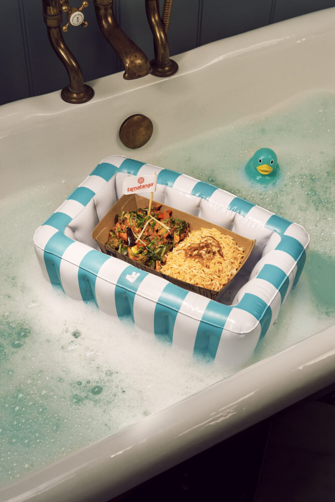 In response to the growing trend of “banquet bathing,” Deliveroo set out to create the ultimate bathing accessory: inflatable takeaway packaging that allowed customers to enjoy their favourite foods from the comfort of their own bath! Scoff Studios were tasked with designing and manufacturing three different inflatable styles to house a range of takeaway packages, before coordinating nationwide distribution for restaurants to give away alongside food orders.