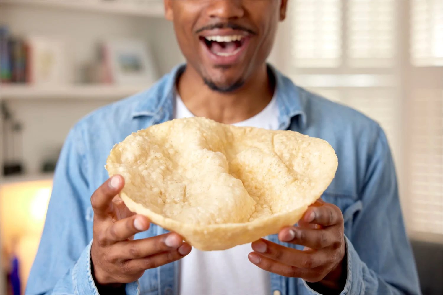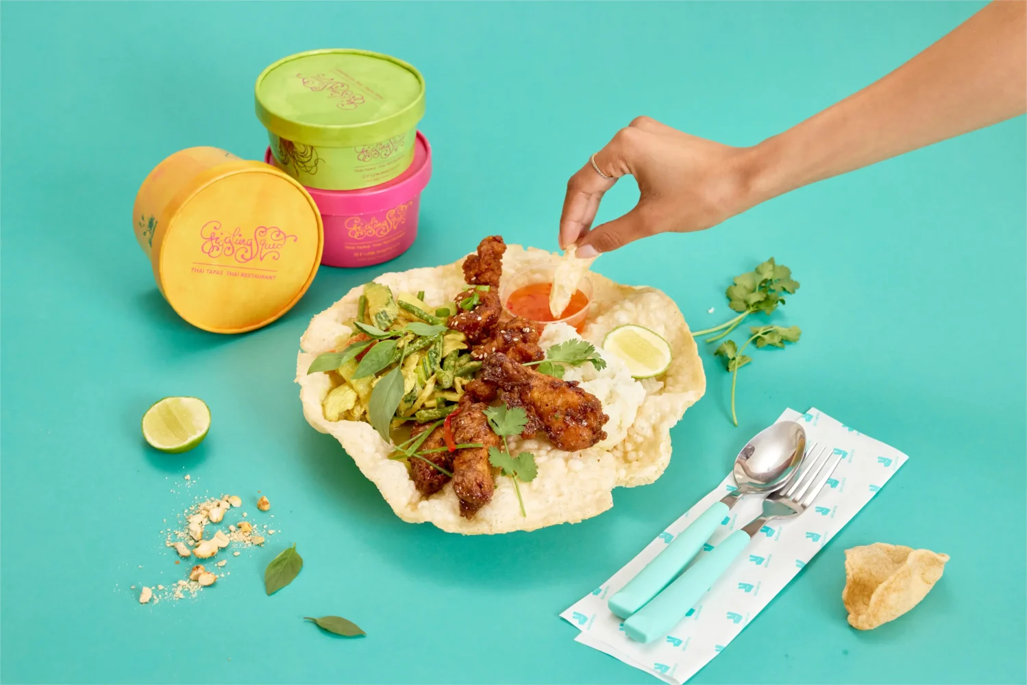 To celebrate the nation's favourite Thai food accompaniment, and revolutionise the way Brit’s eat Thai food, Scoff Studios were asked by Deliveroo to create dinner plate sized Prawn crackers for the restaurant chain Giggling Squid. With Giggling Squid’s recipe as a base, Scoff developed and produced the giant crackers complete with packaging and shipped them to Giggling Squid restaurants across the UK.